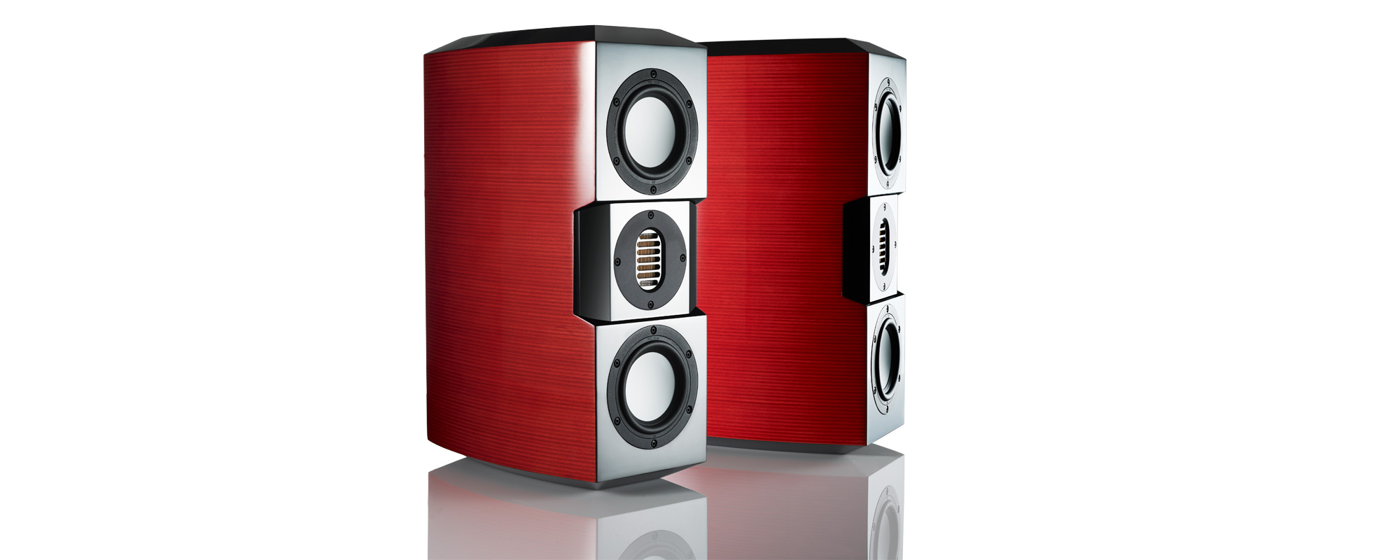 Clarity and dynamics are achieved through the use of Evolution Acoustics’ very own ultra high quality Pleated Diaphragm Air Velocity (PDAV) tweeters and Ceramic Matrix (CMAT) mid-woofer drive units. These components are housed in advanced acoustic cabinetry, which is both structurally inert and sonically diffuse through the use of multiple layer construction. Because the layers are individually bonded by an adhesive compound, the cabinet walls have superior strength. In addition the French curve profile helps to significantly reduce internal back wave reflections from the transducers. Although compact in size, the glue laminated and double braced 25mm curved side walls, 50mm baffles and 50mm top and bottom plates, all combine to create a dense and heavy monitor capable of world class performance. You will also enjoy the beauty of these speakers as they are hand finished with multiple polished layers to produce a deep high gloss shine. Combine all of these elements with an engineering target that is both time and phase aligned and you have one remarkable speaker system.